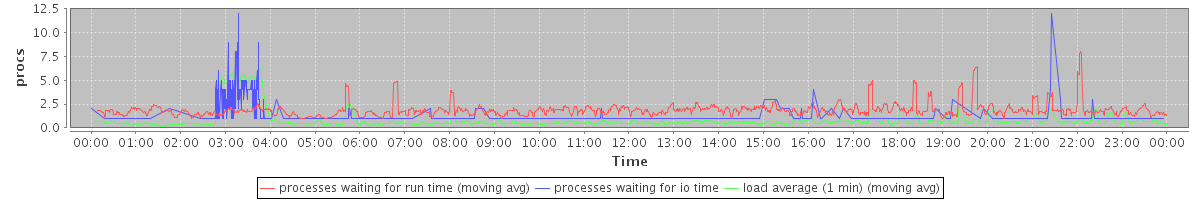 avg(processes waiting for run time) = 1.22 avg(processes waiting for io time) = 0.22 avg(load average (1 min)) = 0.83