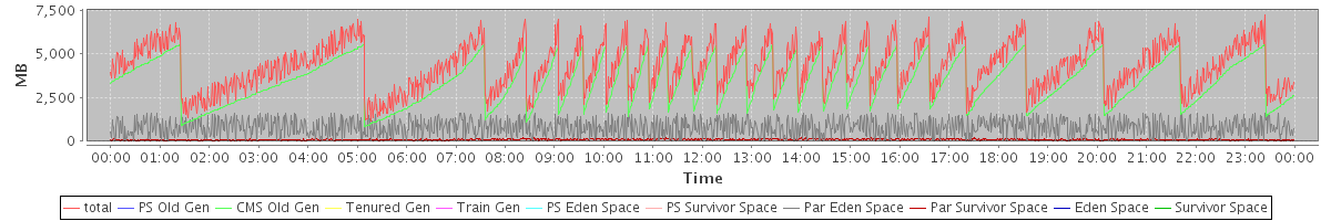 avg(total free) = 3523.90 avg(PS Old Gen free) = 0.00 avg(CMS Old Gen free) = 2610.08 avg(Tenured Gen free) = 0.00 avg(Train Gen free) = 0.00 avg(PS Eden Space free) = 0.00 avg(PS Survivor Space free) = 0.00 avg(Par Eden Space free) = 805.34 avg(Par Survivor Space free) = 108.48 avg(Eden Space free) = 0.00 avg(Survivor Space free) = 0.00