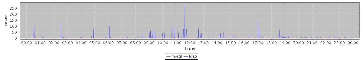 avg(mysql) = 0.16 avg(ldap) = 2.50