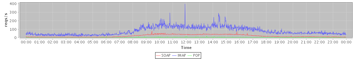 Host zm04.stanford.edu: Mailboxd: Request Rate by Client Protocol
