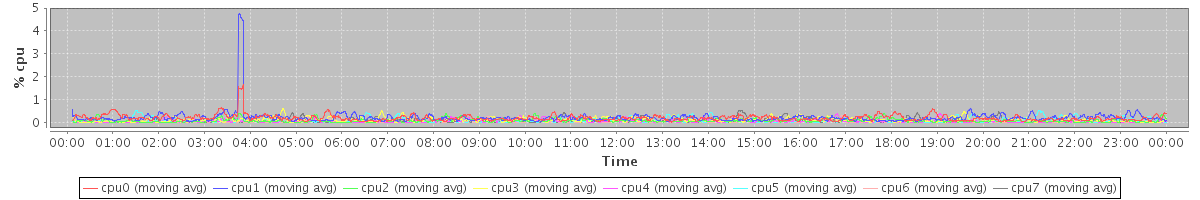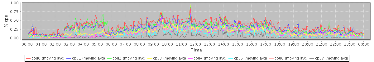 avg(cpu0) = 0.19 avg(cpu1) = 0.21 avg(cpu2) = 0.08 avg(cpu3) = 0.11 avg(cpu4) = 0.06 avg(cpu5) = 0.08 avg(cpu6) = 0.03 avg(cpu7) = 0.06