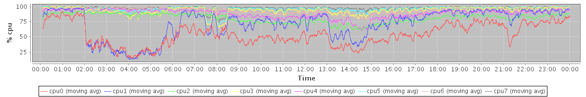 avg(cpu0) = 1.35 avg(cpu1) = 1.21 avg(cpu2) = 1.03 avg(cpu3) = 0.87 avg(cpu4) = 0.97 avg(cpu5) = 0.78 avg(cpu6) = 0.76 avg(cpu7) = 0.66