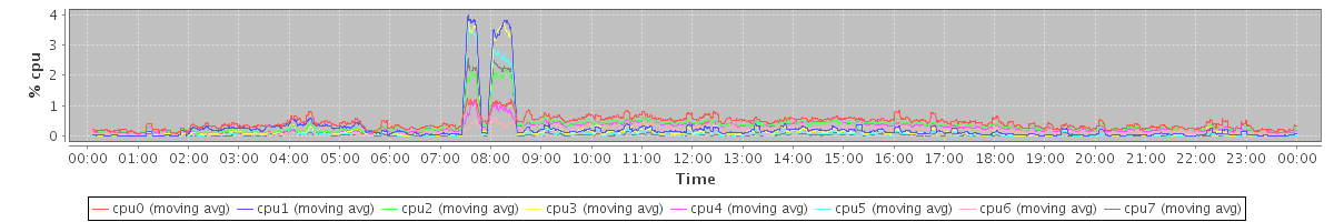 avg(cpu0) = 0.11 avg(cpu1) = 0.21 avg(cpu2) = 0.02 avg(cpu3) = 0.07 avg(cpu4) = 0.04 avg(cpu5) = 0.05 avg(cpu6) = 0.04 avg(cpu7) = 0.03