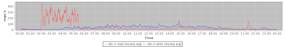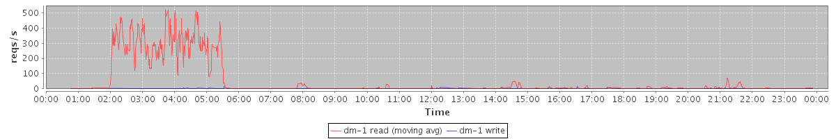 avg(dm-1 read) = 1716.95 avg(dm-1 write) = 1.25