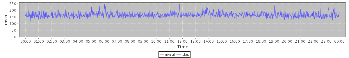 avg(mysql) = 0.15 avg(ldap) = 165.59