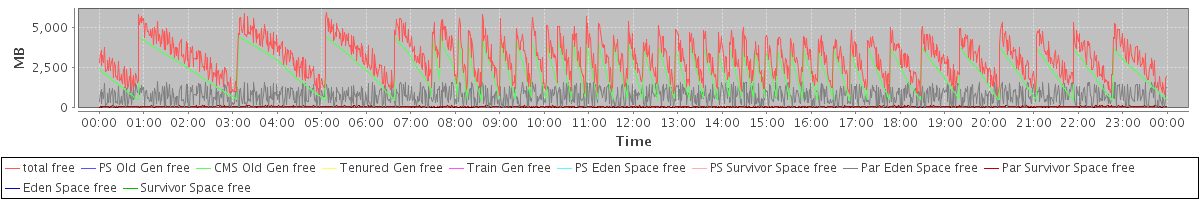 avg(total free) = 3103.59 avg(PS Old Gen free) = 0.00 avg(CMS Old Gen free) = 2256.16 avg(Tenured Gen free) = 0.00 avg(Train Gen free) = 0.00 avg(PS Eden Space free) = 0.00 avg(PS Survivor Space free) = 0.00 avg(Par Eden Space free) = 772.53 avg(Par Survivor Space free) = 74.90 avg(Eden Space free) = 0.00 avg(Survivor Space free) = 0.00