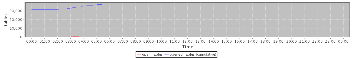 avg(open_tables) = 1185.01 avg(opened_tables (cumulative)) = 36736.38