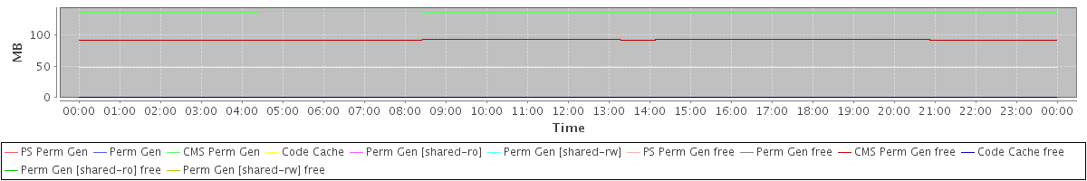 avg(PS Perm Gen) = 0.00 avg(Perm Gen) = 0.00 avg(CMS Perm Gen) = 136.45 avg(Code Cache) = 47.51 avg(Perm Gen [shared-ro]) = 0.00 avg(Perm Gen [shared-rw]) = 0.00 avg(PS Perm Gen free) = 0.00 avg(Perm Gen free) = 0.00 avg(CMS Perm Gen free) = 91.91 avg(Code Cache free) = 0.31 avg(Perm Gen [shared-ro] free) = 0.00 avg(Perm Gen [shared-rw] free) = 0.00