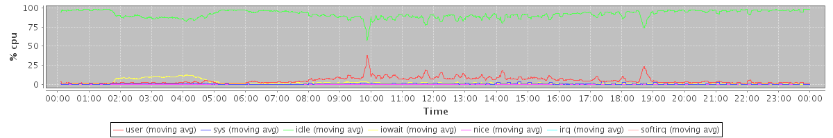 avg(user) = 5.21 avg(sys) = 0.65 avg(idle) = 91.70 avg(iowait) = 2.26 avg(nice) = 0.10 avg(irq) = 0.00 avg(softirq) = 0.08