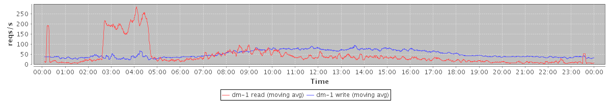 avg(dm-1 read) = 748.43 avg(dm-1 write) = 1169.92