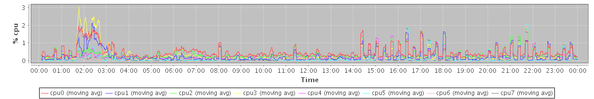avg(cpu0) = 0.08 avg(cpu1) = 0.15 avg(cpu2) = 0.02 avg(cpu3) = 0.10 avg(cpu4) = 0.02 avg(cpu5) = 0.03 avg(cpu6) = 0.02 avg(cpu7) = 0.01