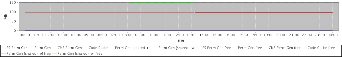 avg(PS Perm Gen) = 0.00 avg(Perm Gen) = 0.00 avg(CMS Perm Gen) = 142.71 avg(Code Cache) = 47.53 avg(Perm Gen [shared-ro]) = 0.00 avg(Perm Gen [shared-rw]) = 0.00 avg(PS Perm Gen free) = 0.00 avg(Perm Gen free) = 0.00 avg(CMS Perm Gen free) = 96.45 avg(Code Cache free) = 0.35 avg(Perm Gen [shared-ro] free) = 0.00 avg(Perm Gen [shared-rw] free) = 0.00