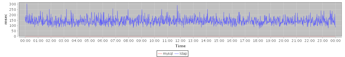 avg(mysql) = 0.24 avg(ldap) = 143.21