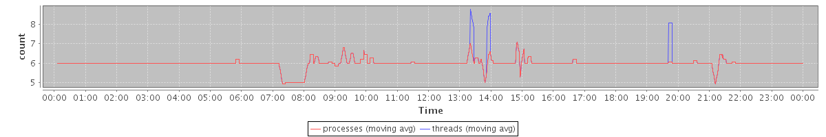 avg(processes) = 5.99 avg(threads) = 6.02