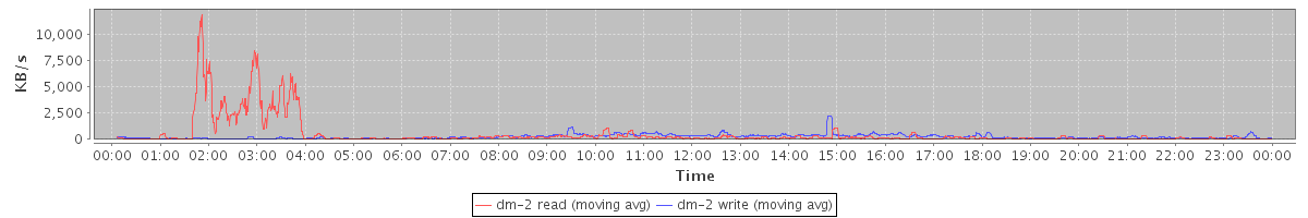 avg(dm-2 read) = 26.51 avg(dm-2 write) = 13.44