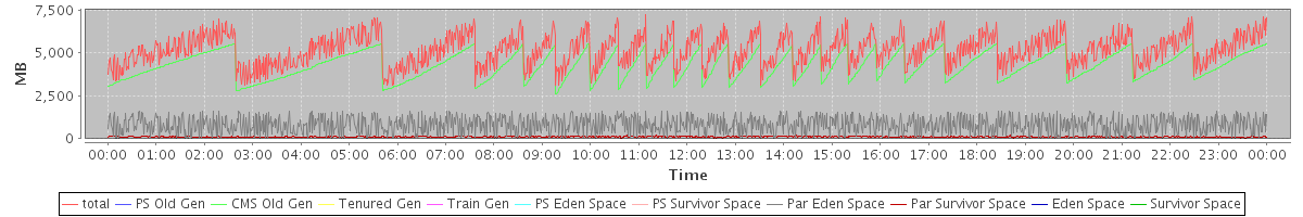 avg(total) = 5182.64 avg(PS Old Gen) = 0.00 avg(CMS Old Gen) = 4267.81 avg(Tenured Gen) = 0.00 avg(Train Gen) = 0.00 avg(PS Eden Space) = 0.00 avg(PS Survivor Space) = 0.00 avg(Par Eden Space) = 807.91 avg(Par Survivor Space) = 106.91 avg(Eden Space) = 0.00 avg(Survivor Space) = 0.00