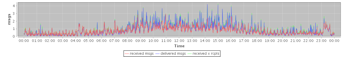 avg(received msgs) = 0.74 avg(delivered msgs) = 0.87 avg(received x rcpts) = 0.97