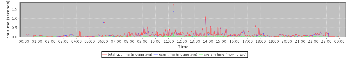 avg(total cputime) = 0.08 avg(user time) = 0.07 avg(system time) = 0.01