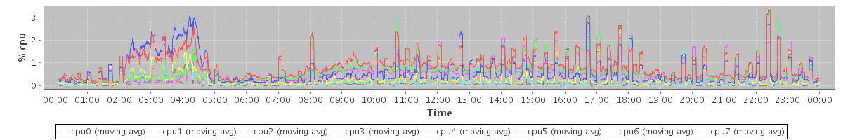 avg(cpu0) = 0.09 avg(cpu1) = 0.22 avg(cpu2) = 0.02 avg(cpu3) = 0.05 avg(cpu4) = 0.02 avg(cpu5) = 0.03 avg(cpu6) = 0.02 avg(cpu7) = 0.02