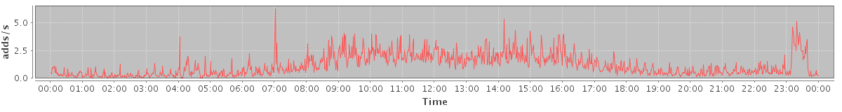 max(MsgActionRequest.move) = 633.00 max(GetMiniCalRequest) = 75.00 max(SearchRequest) = 740.00 max(MsgActionRequest.delete) = 843.00 max(NoOpRequest) = 215.00 max(MsgActionRequest.update) = 104.00 max(GetFolderRequest) = 1991.00 max(SyncRequest) = 1249.00 max(GetEffectiveFolderPermsRequest) = 218.00 max(GetAppointmentRequest) = 1571.00