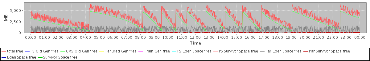 avg(total free) = 3544.47 avg(PS Old Gen free) = 0.00 avg(CMS Old Gen free) = 2679.32 avg(Tenured Gen free) = 0.00 avg(Train Gen free) = 0.00 avg(PS Eden Space free) = 0.00 avg(PS Survivor Space free) = 0.00 avg(Par Eden Space free) = 794.89 avg(Par Survivor Space free) = 70.26 avg(Eden Space free) = 0.00 avg(Survivor Space free) = 0.00