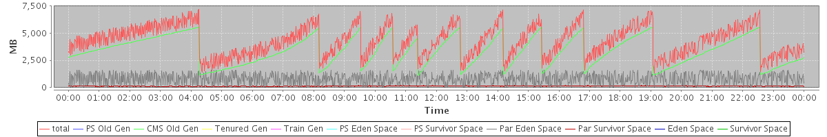 avg(total) = 4282.84 avg(PS Old Gen) = 0.00 avg(CMS Old Gen) = 3341.68 avg(Tenured Gen) = 0.00 avg(Train Gen) = 0.00 avg(PS Eden Space) = 0.00 avg(PS Survivor Space) = 0.00 avg(Par Eden Space) = 810.74 avg(Par Survivor Space) = 130.43 avg(Eden Space) = 0.00 avg(Survivor Space) = 0.00