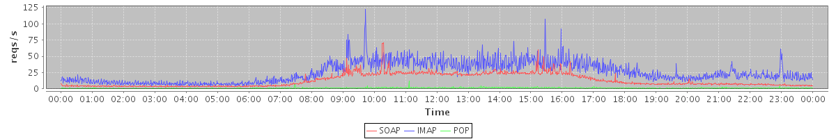 Host zm10.stanford.edu: Mailboxd: Request Rate by Client Protocol