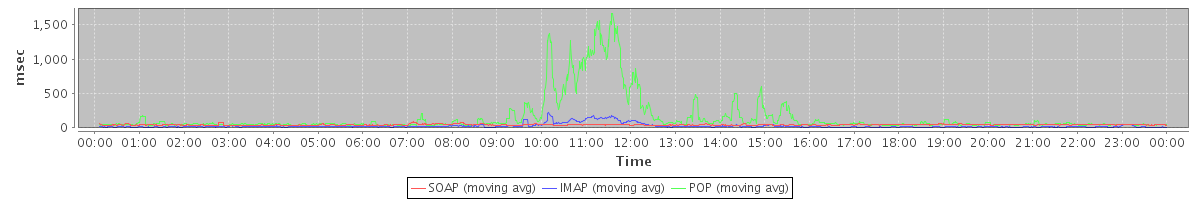 Host zm10.stanford.edu: Mailboxd: Response Time by Client Protocol