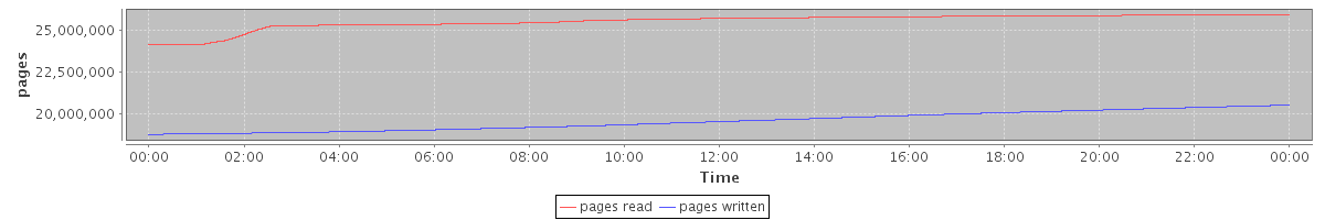 avg(pages read) = 25515416.53 avg(pages written) = 19589088.27