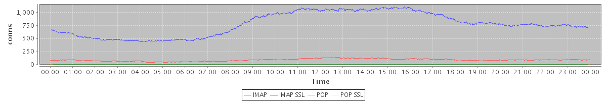 avg(IMAP) = 86.57 avg(IMAP SSL) = 772.91 avg(POP) = 0.07 avg(POP SSL) = 1.03