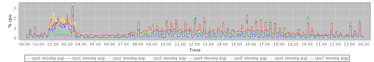 avg(cpu0) = 0.08 avg(cpu1) = 0.15 avg(cpu2) = 0.02 avg(cpu3) = 0.08 avg(cpu4) = 0.02 avg(cpu5) = 0.03 avg(cpu6) = 0.03 avg(cpu7) = 0.02
