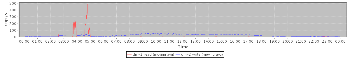 avg(dm-2 read) = 428.38 avg(dm-2 write) = 826.55