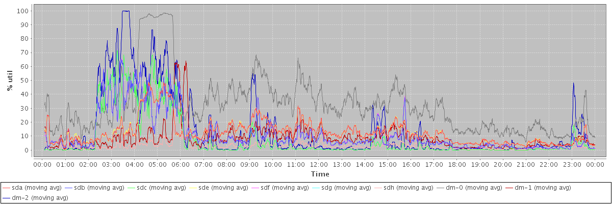 avg(sda) = 12.88 avg(sdb) = 11.75 avg(sdc) = 7.91 avg(sde) = 12.92 avg(sdf) = 11.74 avg(sdg) = 7.91 avg(sdh) = 2.92 avg(dm-0) = 32.40 avg(dm-1) = 8.66 avg(dm-2) = 13.57