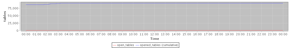 avg(open_tables) = 1192.58 avg(opened_tables (cumulative)) = 91086.50