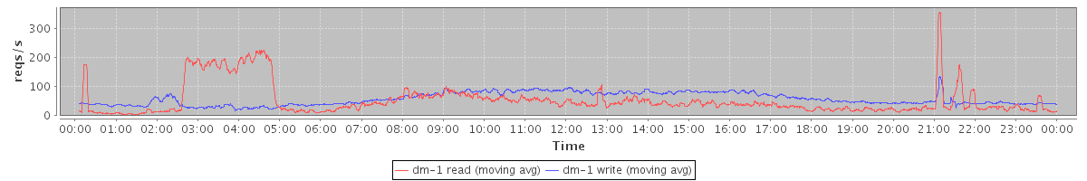 avg(dm-1 read) = 880.03 avg(dm-1 write) = 1334.10