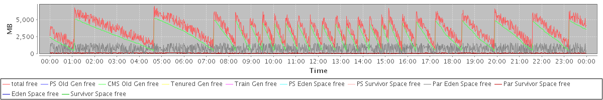 avg(total free) = 3580.49 avg(PS Old Gen free) = 0.00 avg(CMS Old Gen free) = 2675.76 avg(Tenured Gen free) = 0.00 avg(Train Gen free) = 0.00 avg(PS Eden Space free) = 0.00 avg(PS Survivor Space free) = 0.00 avg(Par Eden Space free) = 793.82 avg(Par Survivor Space free) = 110.91 avg(Eden Space free) = 0.00 avg(Survivor Space free) = 0.00