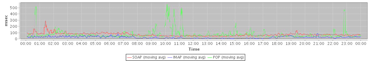 Host zm01.stanford.edu: Mailboxd: Response Time by Client Protocol