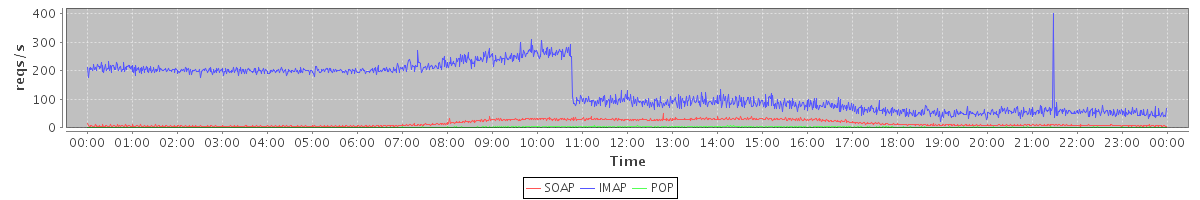 Host zm03.stanford.edu: Mailboxd: Request Rate by Client Protocol