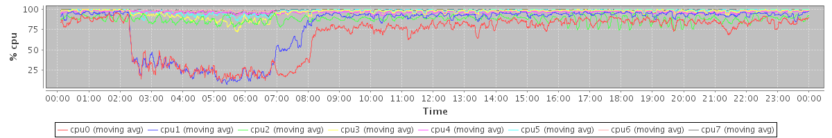 avg(cpu0) = 68.95 avg(cpu1) = 78.59 avg(cpu2) = 87.77 avg(cpu3) = 96.08 avg(cpu4) = 96.16 avg(cpu5) = 97.77 avg(cpu6) = 97.47 avg(cpu7) = 98.83