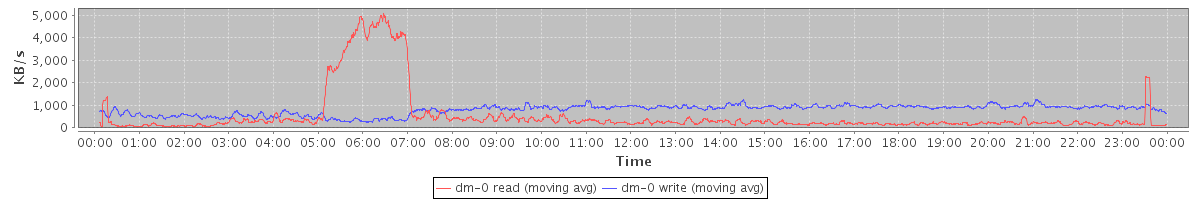 avg(dm-0 read) = 553.06 avg(dm-0 write) = 793.72