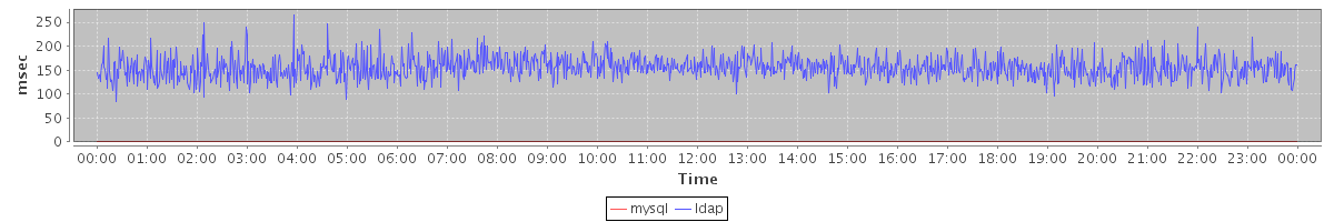 avg(mysql) = 0.19 avg(ldap) = 154.97