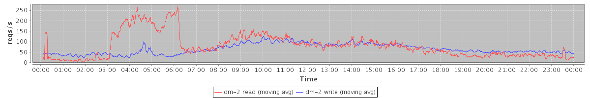 avg(dm-1 read) = 34.08 avg(dm-1 write) = 0.09