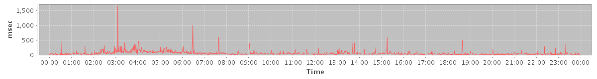 avg(ModifyAppointmentRequest) = 1011.37 avg(DeleteAccountRequest) = 45223.80 avg(CreateAppointmentExceptionRequest) = 1010.66 avg(FolderActionRequest.delete) = 1662.12 avg(ForwardAppointmentInviteRequest) = 721.00 avg(FolderActionRequest.read) = 1048.00 avg(SendInviteReplyRequest) = 1105.60 avg(FolderActionRequest.empty) = 1428.10 avg(BackupRequest) = 62783.00 avg(GetQuotaUsageRequest) = 1844.00