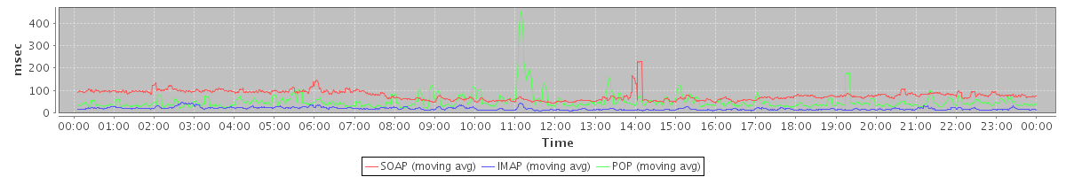 avg(SOAP) = 25.84 avg(IMAP) = 86.14 avg(POP) = 5.26