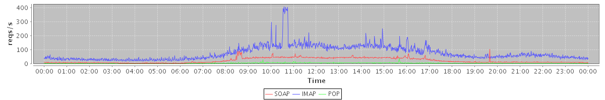 Host zm07.stanford.edu: Mailboxd: Request Rate by Client Protocol