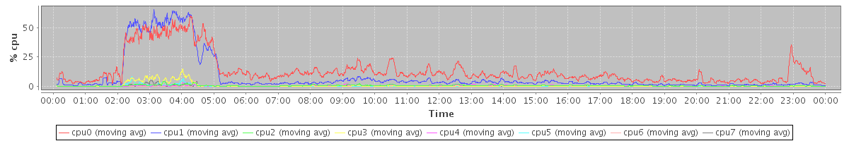 avg(cpu0) = 0.24 avg(cpu1) = 0.06 avg(cpu2) = 0.18 avg(cpu3) = 0.04 avg(cpu4) = 0.15 avg(cpu5) = 0.02 avg(cpu6) = 0.09 avg(cpu7) = 0.01