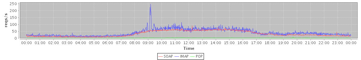 Host zm06.stanford.edu: Mailboxd: Request Rate by Client Protocol