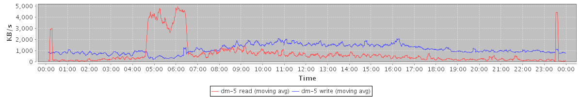 avg(dm-5 read) = 757.74 avg(dm-5 write) = 1143.12