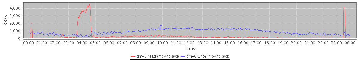 avg(dm-1 read) = 2.19 avg(dm-1 write) = 11.97