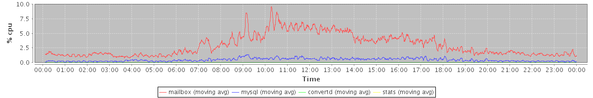 avg(mailbox) = 2.95 avg(mysql) = 0.47 avg(convertd) = 0.00 avg(stats) = 0.00